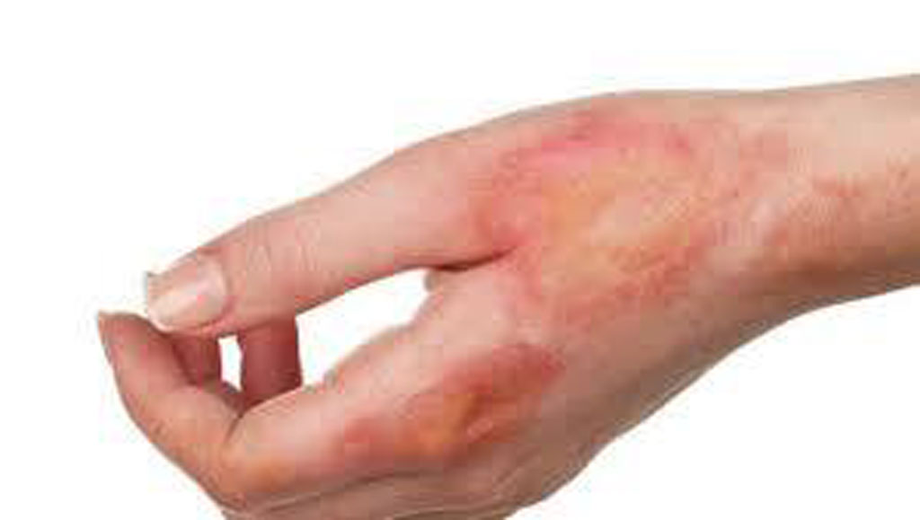 Deride kızarıklık, ağrı ve yanık olan bölgede ödem olmasıyla birlikte ortaya çıkar. Yaklaşık 48 saatte iyileşen bu yanık dereceler arasında en hafif olandır.